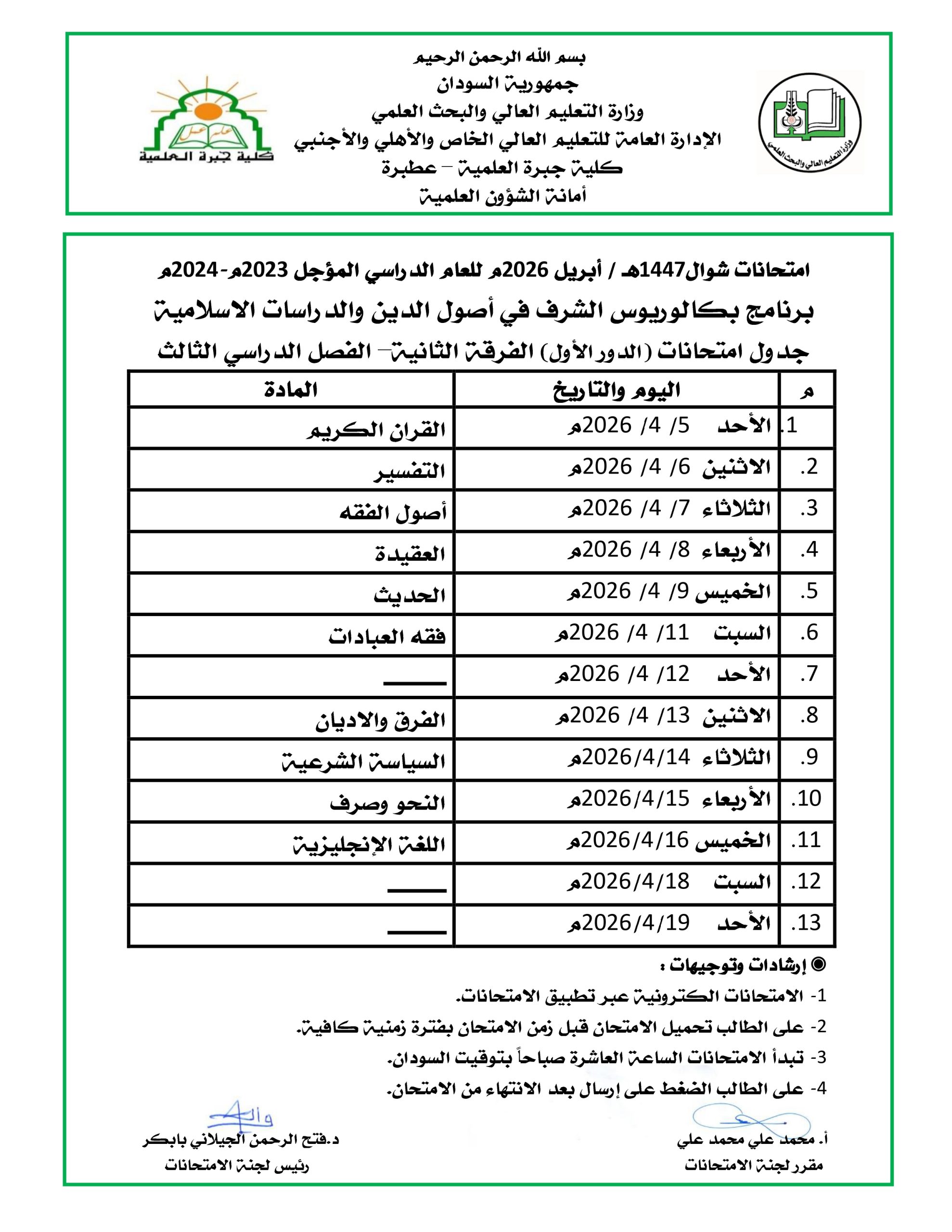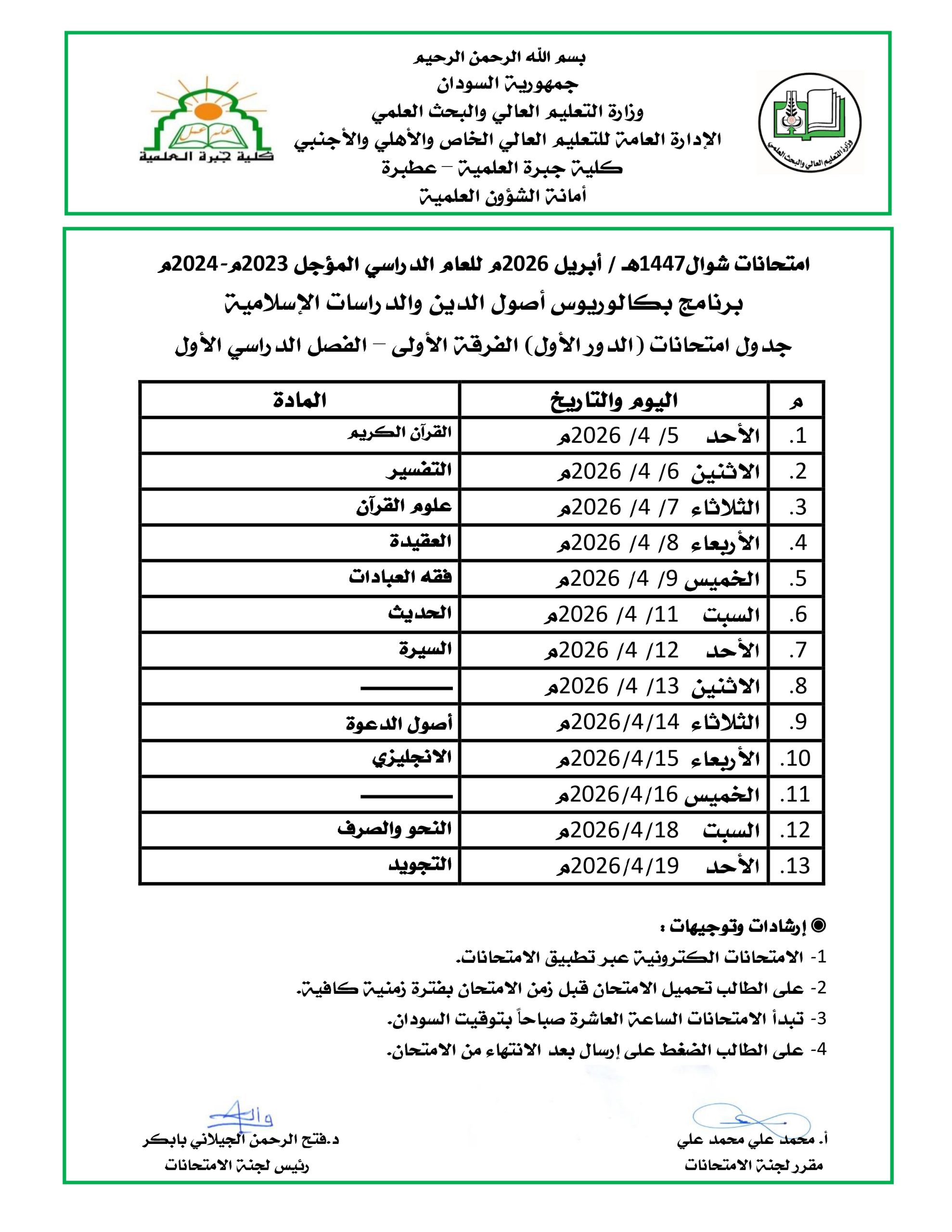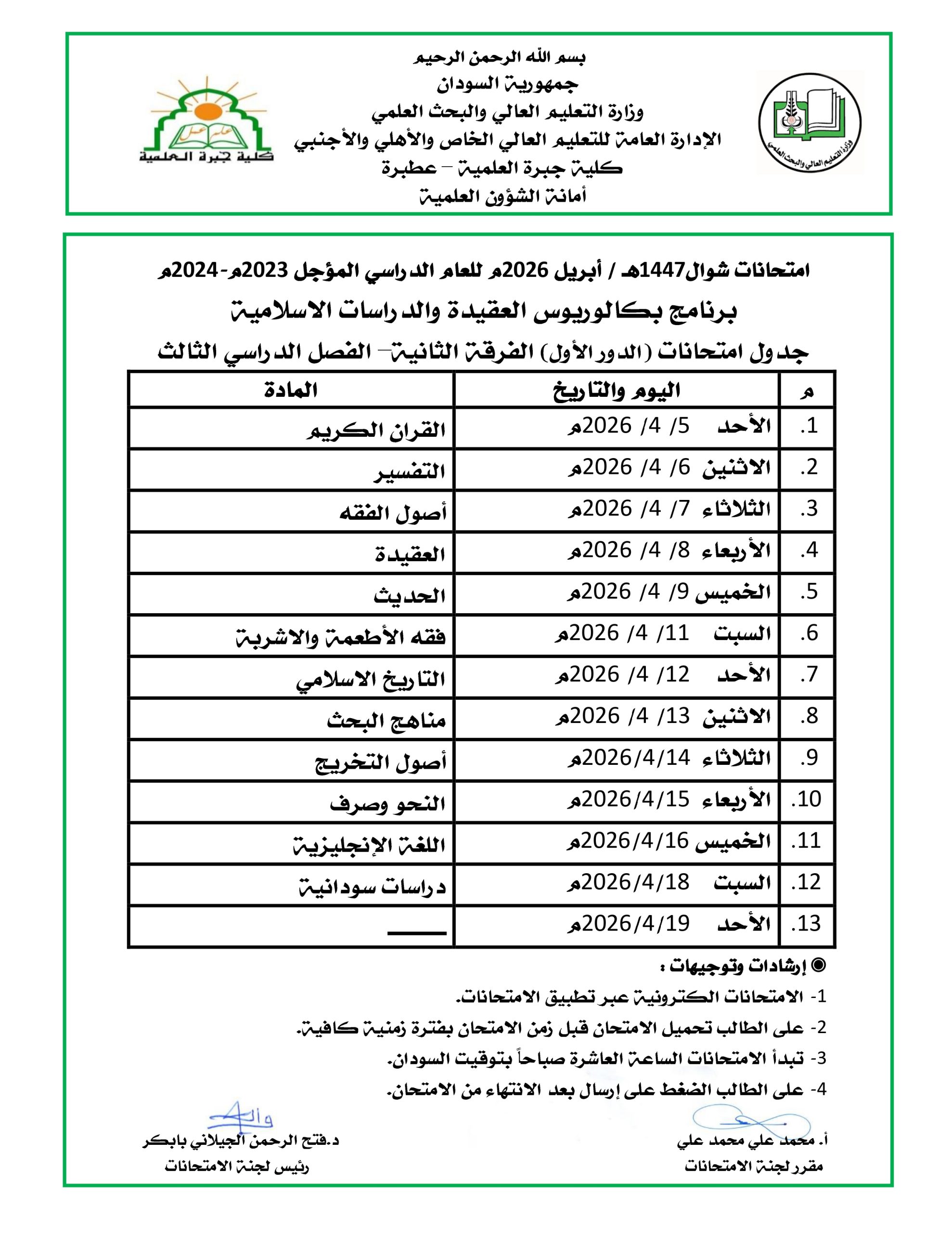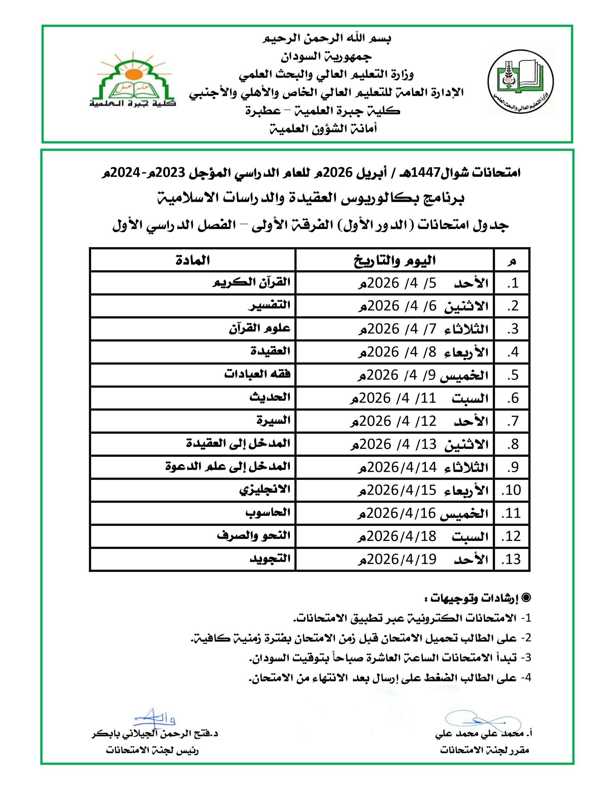 كلية جبرة العلمية تستعرض آفاق تطوير برنامج العقيدة والدراسات الإسلامية في ورشة عمل متخصصة عطبرة : ولاية نهر النيل ،