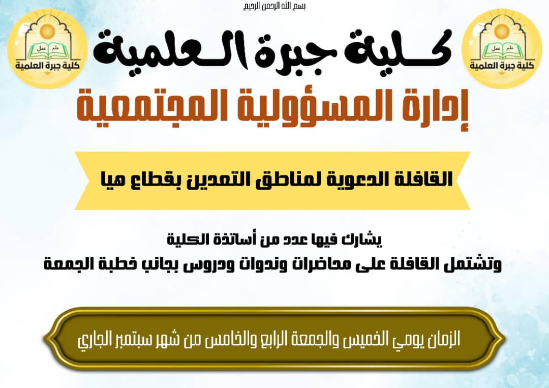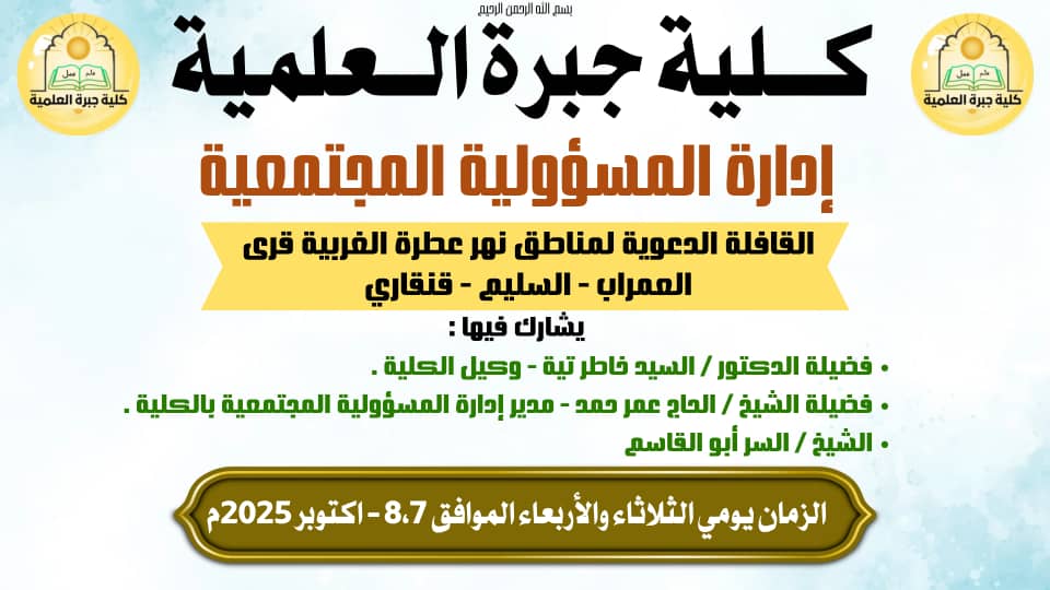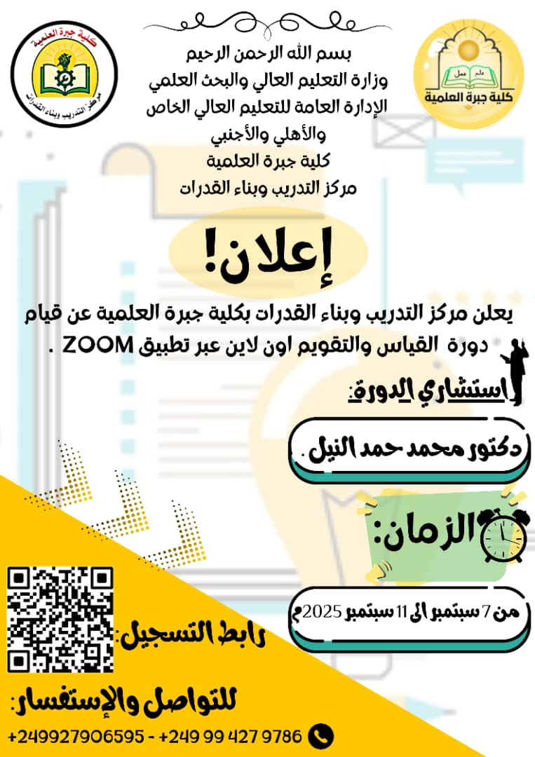 في خطوة لتعزيز قدرات العاملين بها كلية جبرة العلمية تختتم الدورة التدريبية لأساسيات ومبادئ الإدارة عطبرة؛ الخميس٠ 2025/9/11م أكد وكيل